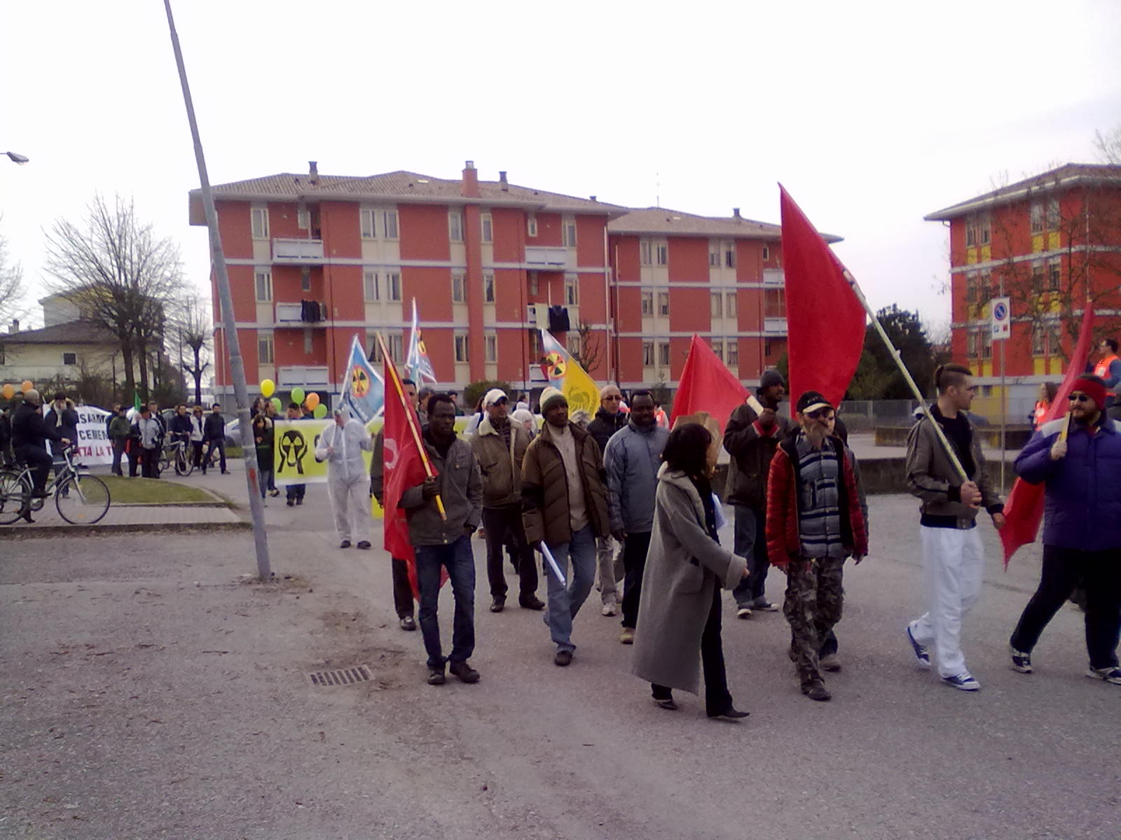 A DOLO (VE) grande e positiva espressione di lotta delle masse popolari, alla manifestazione indetta dai Comitati Ambiente Territorio, con una manifestazione durata 4 ore di oltre 3 mila lavoratori, cittadini, giovani e studenti, con blocco per ore, della nazionale Padova-Venezia. Lo spezzone dei Cobas per il Sindacato di Classe fomato da compagni italiani, nigeriani, rumeni e marocchini della Riviera, si è fortemente caratterizzato, le uniche bandiere rosse serie di tutta la manifestazione, con comizi volanti ed un massiccio volantinaggio. Il testo del ns.volantino. Il ns.Sindacato era l'unica forza sindacale presente in quanto tale. in coda al corteo, due piccoli spezzoni del PRC e del PdCi. Una foto del ns.spezzone