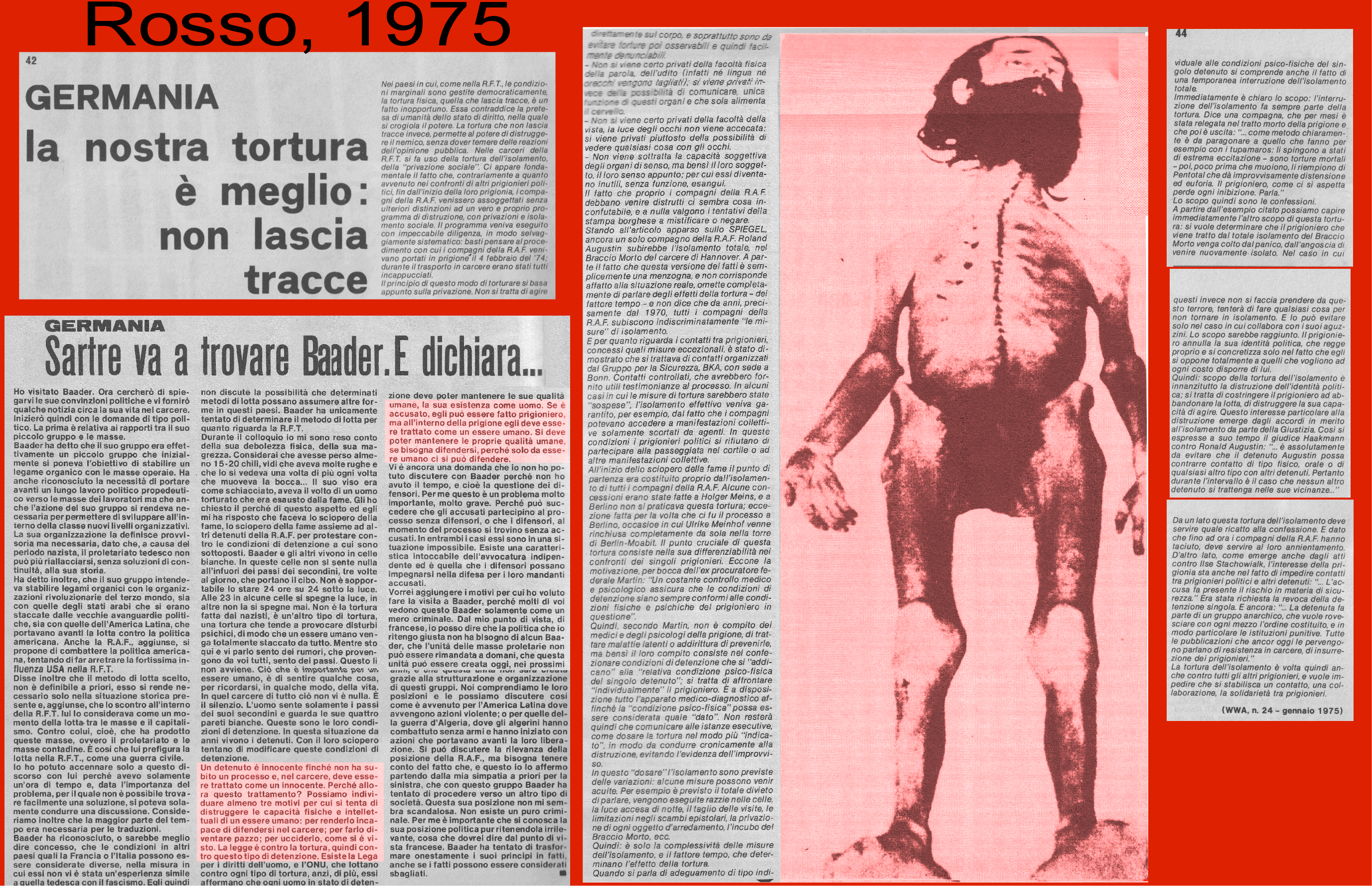 immediatamente dopo i “suicidi” di Stammheim, da Rosso, novembre 1977,
