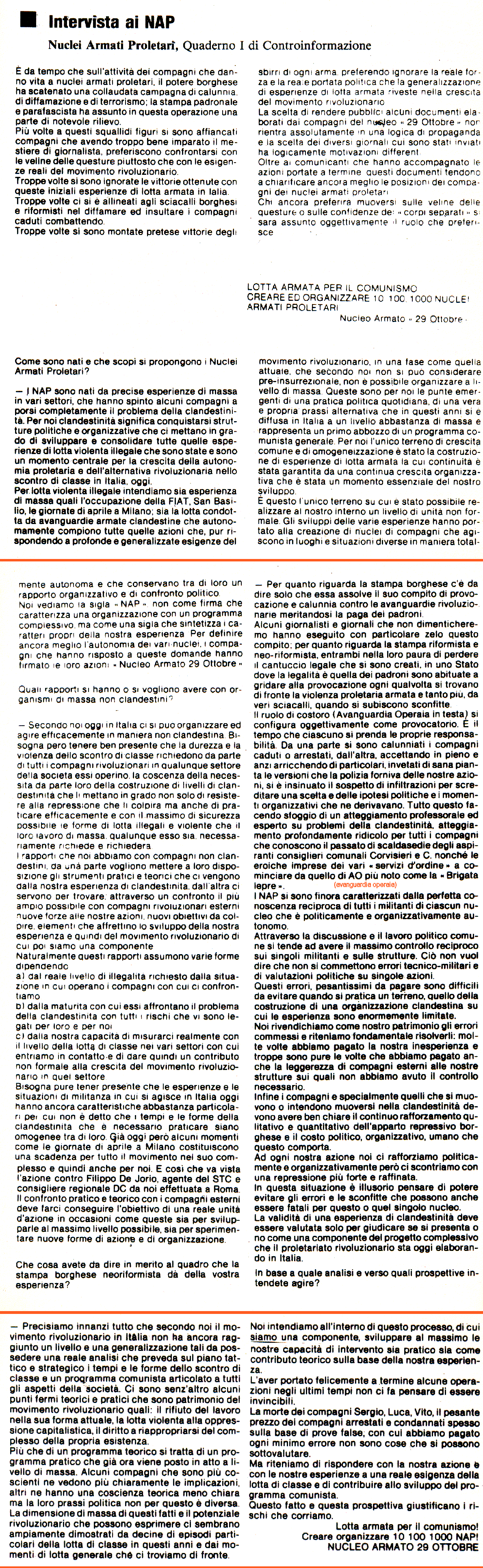 · Autointervista dei Nuclei Armati Proletari – Nucleo armato 29 Ottobre - del 1975, da “il proletariato non si è pentito”; ed.Giuseppe Maj, 1984 (gif) ins.7-1-2006