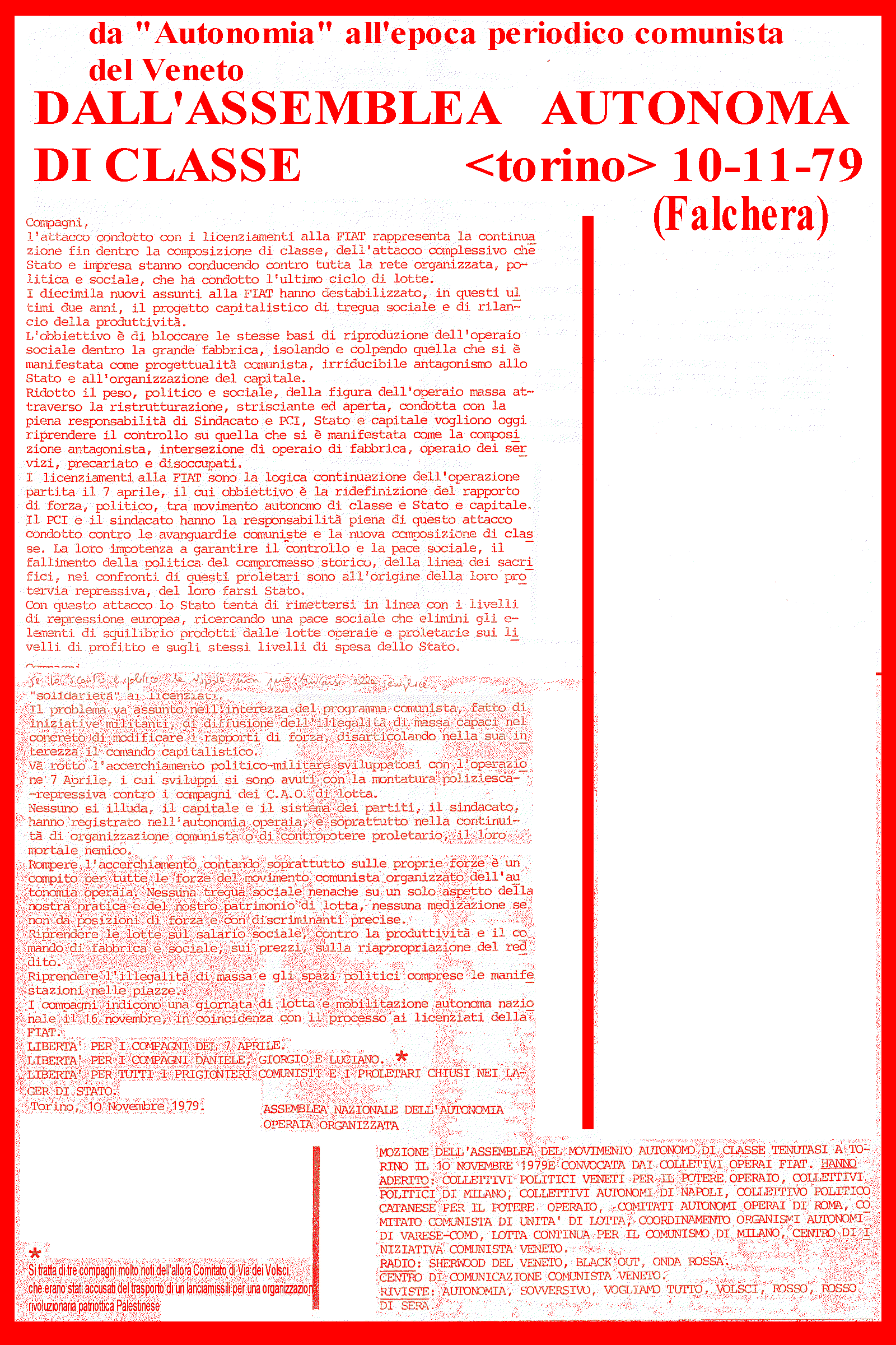Classe, Torino 10 novembre 1979, subito dopo i licenziamenti politici della