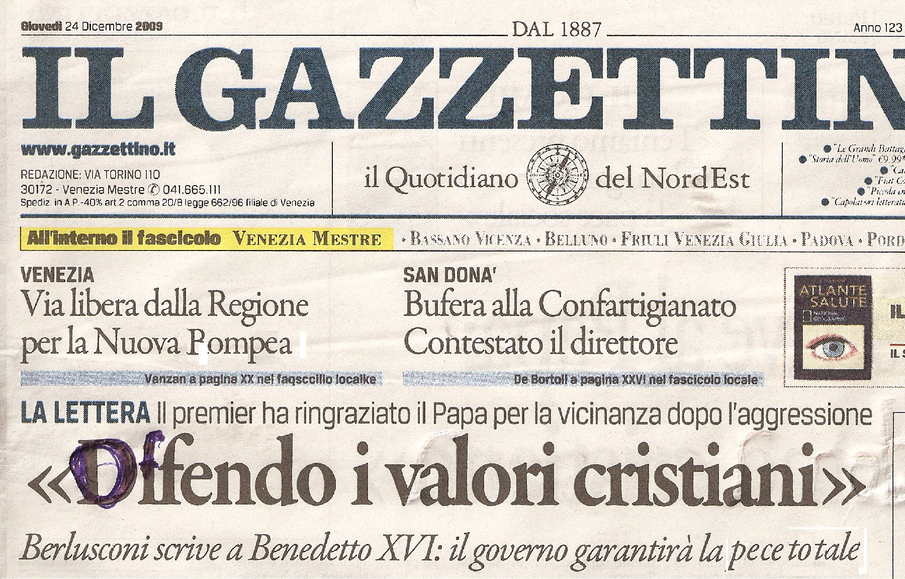 BERLUSKA INCONTRA IL PASTORE TEDESCO: PRIMA PAGINA DEL QUOTIDIANO PIU'VENDUTO NEL NORD-EST
